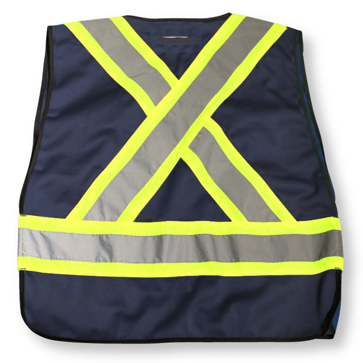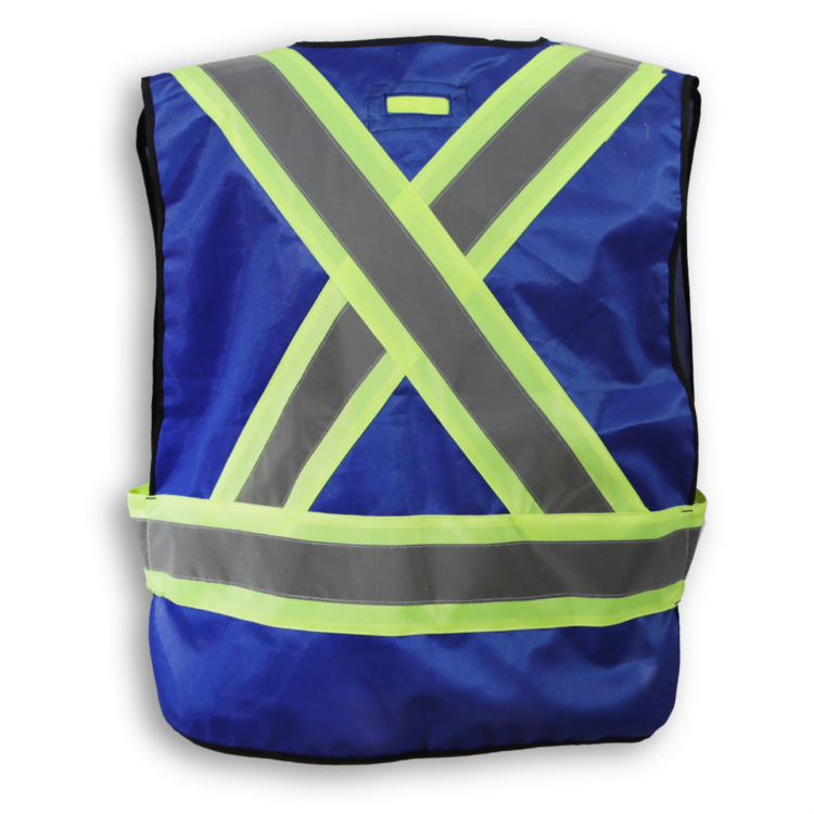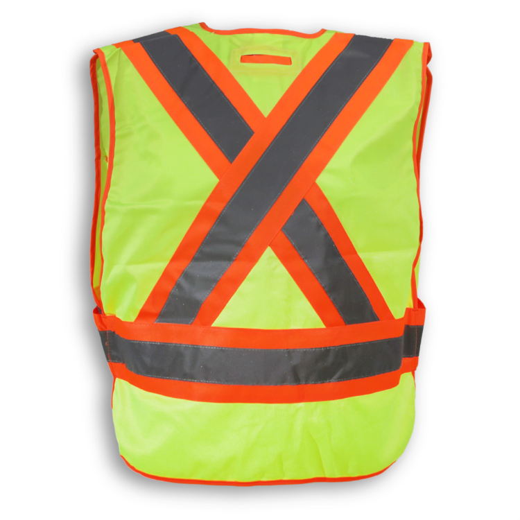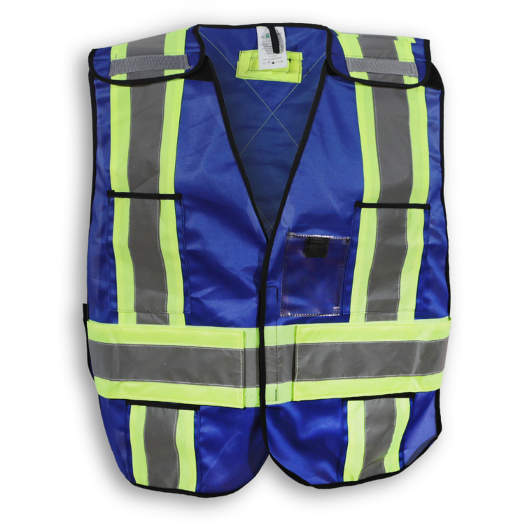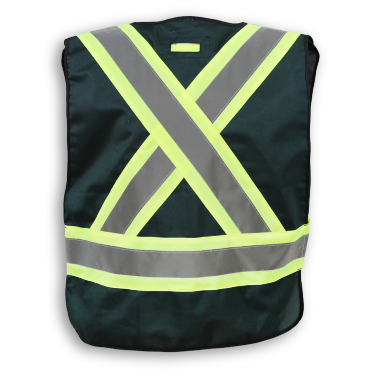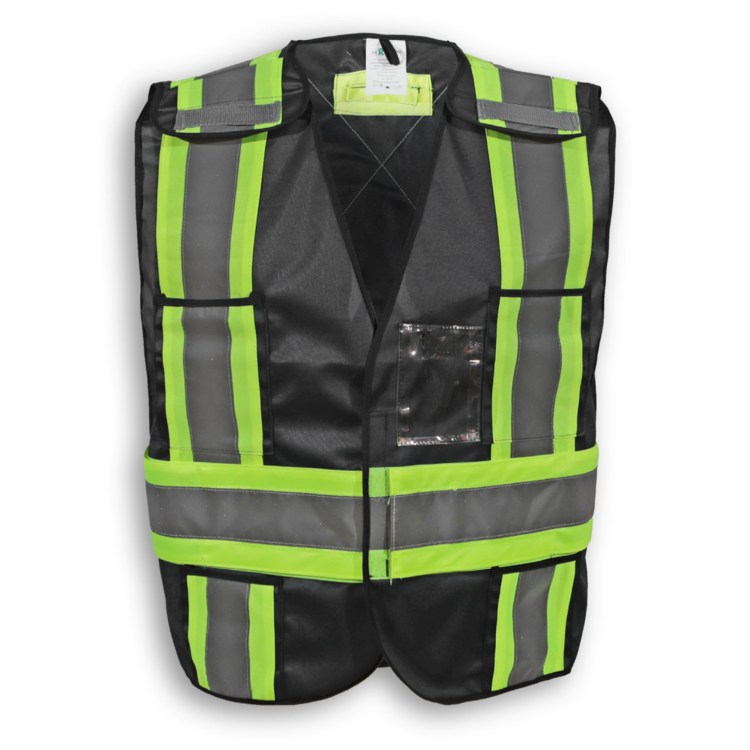 Featuring a convenient D-ring slot, this 100% polyester black safety vest has a 5-point tear-away system, 4 front pockets, a clear ID pocket and 4” reflective tape. It meets CSA Z96-15 Class 1, Level 2 standards