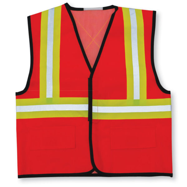 This 100% polyester vest comes with zipper front, has 2 bottom pockets, a breast pocket and a clear ID pocket. It includes 4” reflective tape and meets CSA Z96-15 Class 1, Level 2 standards